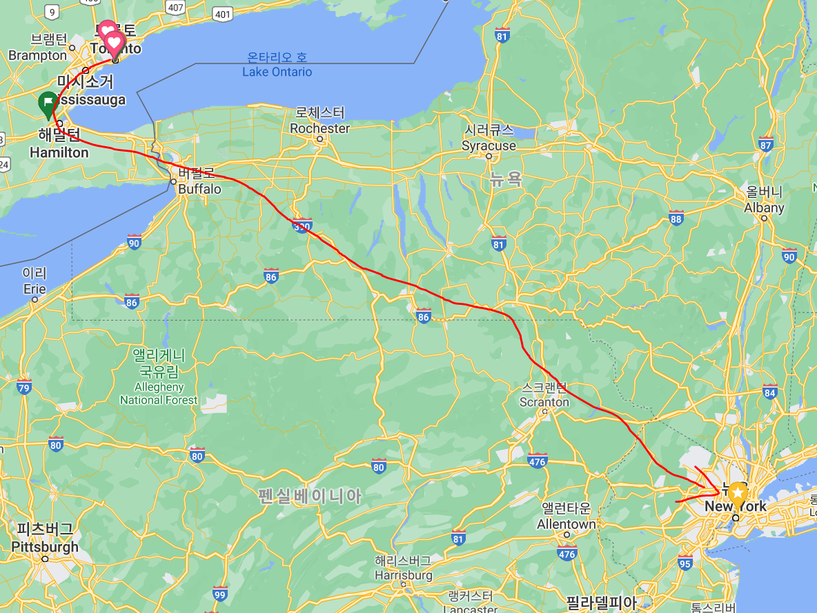 저는 토론토에서 새벽 버스를 타고 뉴욕을 갔어요