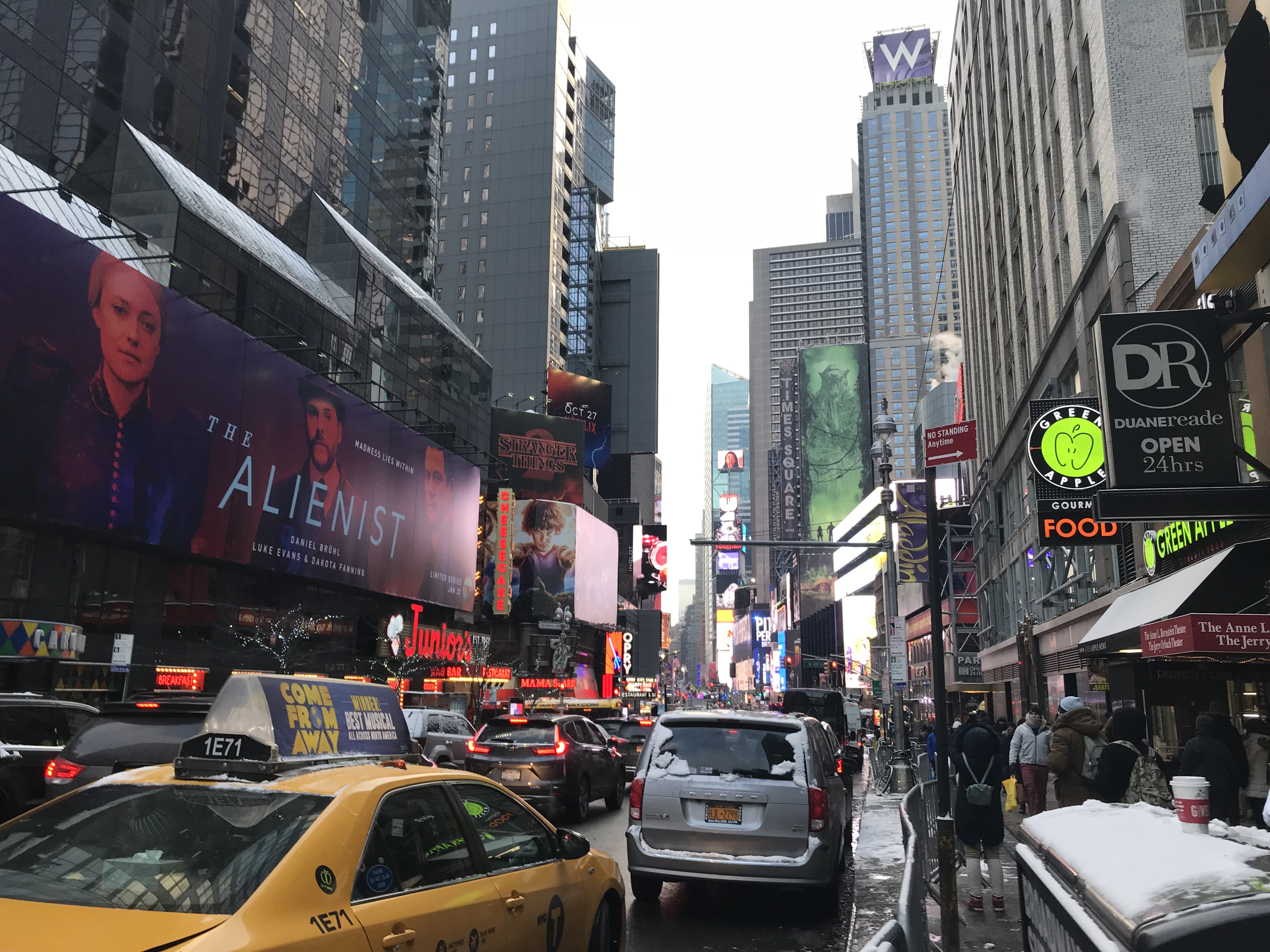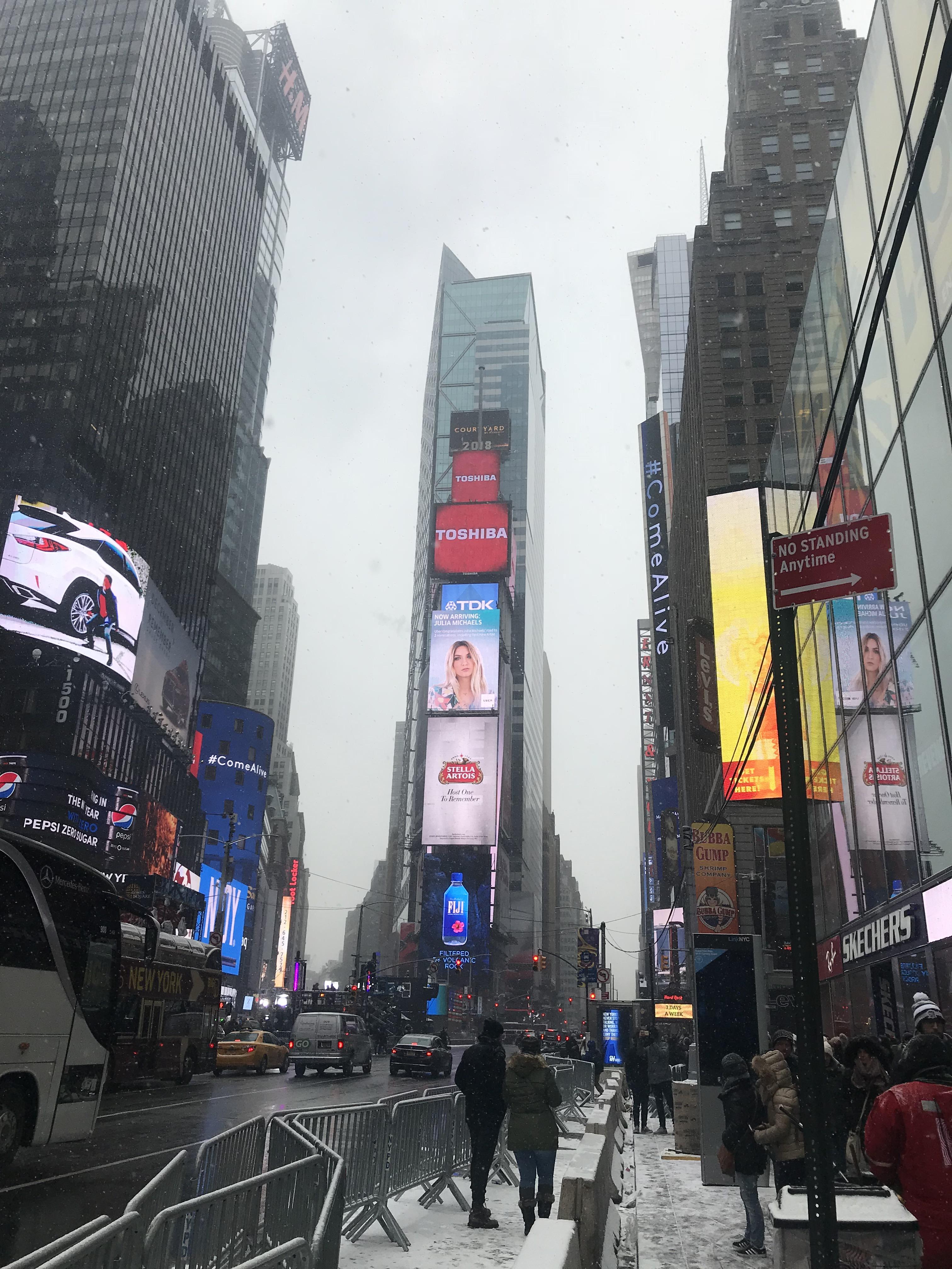 이른 새벽의 타임스퀘어에요! 눈이 내렸던 터라 날씨가 많이 흐렸어요.... 날씨도 엄청 추웠답니다....